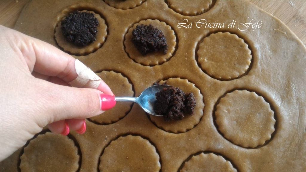 🟣 Si no habéis hecho anteriormente las cassatelle, y por lo tanto no os ha sobrado este relleno típico, o si queréis intentar preparar los pasticciotti al aceite en general con otro tipo de relleno, podréis llenar las galletas mucho más rápidamente con una mermelada de frutas o mermelada de cítricos al gusto, o con una crema para untar de avellanas, pistacho, etc. a vuestra elección.