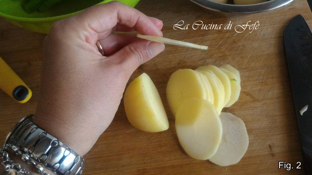 Lavad y pelad las patatas y cortadlas en rodajas finas de 1-2 mm como máximo.