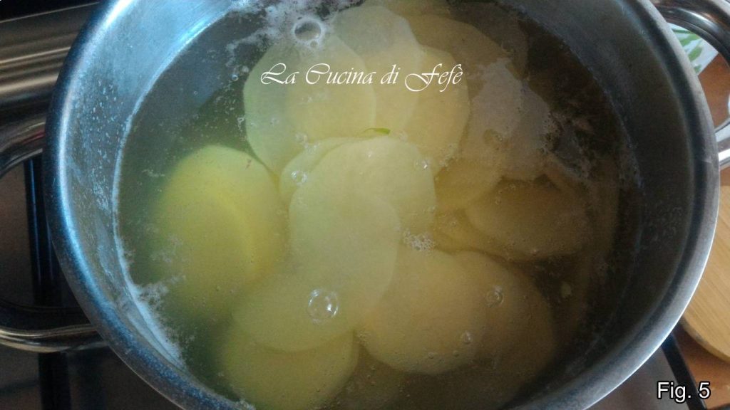 En la misma agua de cocción de los espárragos, escaldad también las patatas por 5′-6′.
