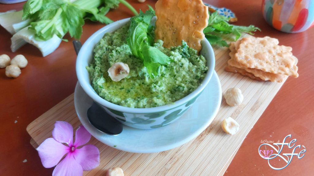 ¿Alguna vez habéis aprovechado el apio para preparar un buen pesto? ¿No? ¡Entonces ha llegado el momento de probarlo absolutamente! Yo lo hice usando inicialmente solo las hojas y añadiendo almendras además de una cantidad modesta de piñones, pero en un momento posterior me sucedió aprovechar también los tallos de apio y sustituir las almendras por avellanas, ¡y debo decir que estaba aún más bueno! La unión de estos simples ingredientes de calidad ha generado un condimento súper sano y versátil, además de sorprendentemente sabroso. Al alargarlo con el caldo de cocción podréis condimentar vuestra pasta preferida o, si se sirve más cremoso y denso, será perfecto en una ocasión de aperitivo, acompañado de crostini, bruschettas, grisines o lo que vuestra imaginación os sugiera. Obviamente, los tallos sobrantes no se tirarán, sino que se utilizarán ampliamente casi como si fueran una especie de pinzimonio junto con otras verduras, ¡y os aseguro que quedaréis genial!