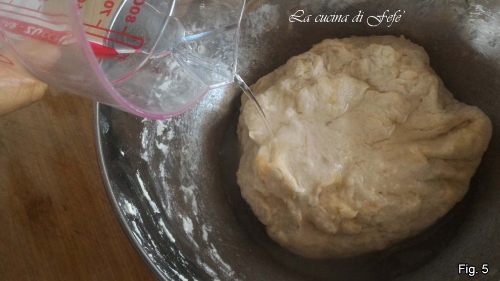 Amasa de nuevo o trabaja con la amasadora hasta obtener una masa firme y elástica. Poco a poco añade los restantes 100 ml de agua, dejando que se absorba la anterior antes de añadir la siguiente*.