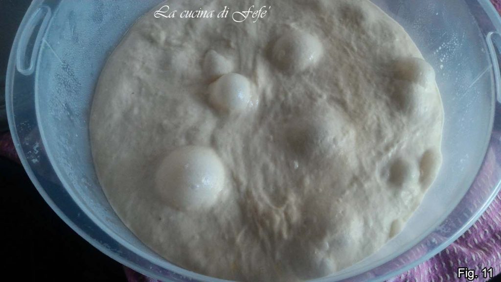 Deja fermentar una última vez durante 30′ o 1 h. Luego aceita la superficie y hunde los dedos para crear grandes agujeros en la masa (sin tocar el fondo de la bandeja).