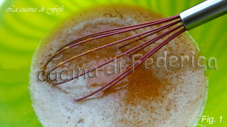 • Cocina la calabaza al vapor durante 25 minutos. Alternativamente, puedes hervirla, pero en ese caso deberás escurrir bien toda el agua residual una vez cocida, de lo contrario la receta no saldrá bien. Mientras tanto, en un bol grande, bate los huevos con el azúcar, luego añade la mantequilla derretida al baño maría ya enfriada y la canela. Mezcla con una batidora manual (fig. 1).