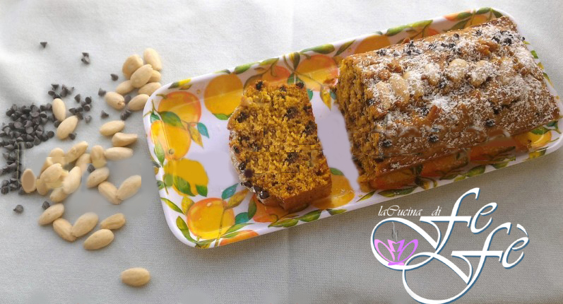 Os confieso que la calabaza amarilla es una de mis verduras otoñales favoritas, no solo porque es deliciosa y rica en propiedades beneficiosas, ¡sino sobre todo por su versatilidad! De hecho, es ideal para cualquier preparación, ¡incluso dulces! Entre los muchos preparados a lo largo de estos años, hay uno al que le tengo mucho cariño, quizás porque fue el primer experimento a base de calabaza que hice cuando decidí abrir un blog de cocina. Después de este, hubo muchos otros, pero el plumcake que hoy comparto con vosotros es realmente especial y adecuado para toda la familia. Agradezco a mi hermana por recordármelo, ya que la receta había quedado en el olvido de mi primerísimo blog, y las fotos tremendas pueden atestiguarlo, pero era una verdadera lástima no compartirla con vosotros. Es un dulce de despensa muy suave y muy aromático, rico en sabor gracias a las almendras y las gotas de chocolate. Un verdadero manjar que haría salivar a cualquiera. Perfecto para el desayuno y la merienda acompañado de una taza de chocolate caliente o una infusión caliente y aromática. Lo presenté ayer en una hermosa jornada al aire libre con la familia, ¡y debo decir que literalmente voló!
