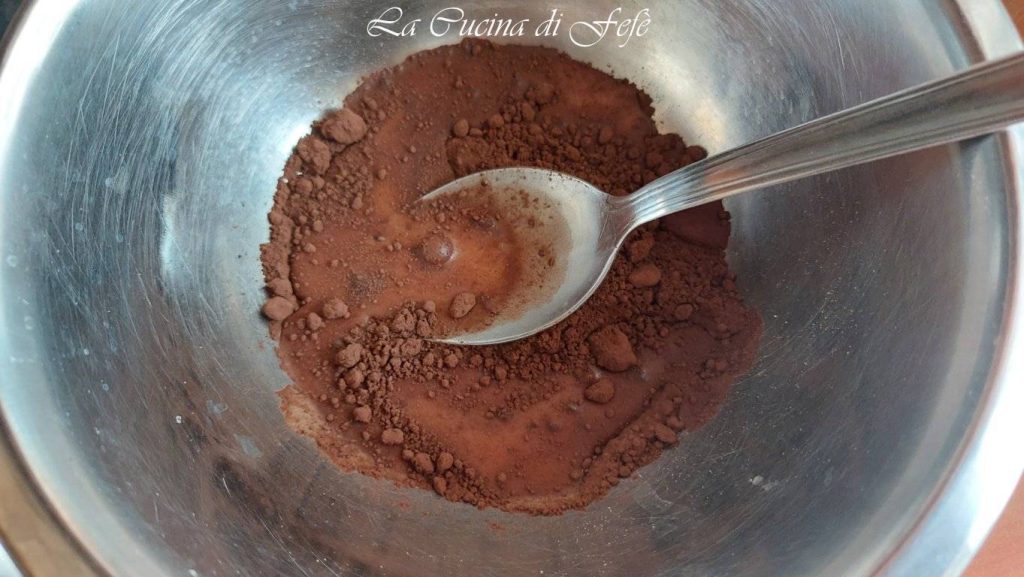 Mientras tanto, en un bol, trabaja unos instantes el cacao con la leche de avena. Recomiendo tamizar el cacao previamente para una textura mejor y sin grumos.