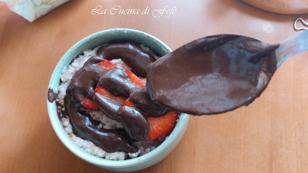 Si lo preparas con antelación, se conserva en la nevera durante 2 días, dentro de un tarro de vidrio con cierre hermético, pero añade el chocolate y las fresas frescas solo en el momento de servir. La avena, sin embargo, sigue absorbiendo líquidos durante el reposo, así que si el porridge quedara demasiado denso, añade un chorrito de agua o de leche vegetal caliente y mezcla enérgicamente.