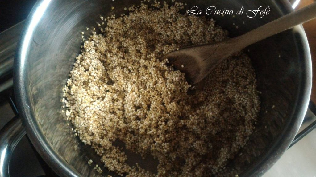 Mientras tanto, en una olla grande, tuesta un par de minutos sin añadir grasa la quinoa.