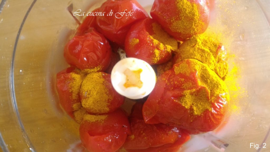 Una vez cocidos, reserva los tomatitos con el ramo para la decoración final y coloca la parte restante en una batidora o licuadora junto con la cúrcuma.