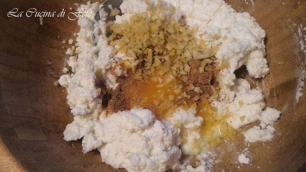 Mientras tanto, en un bol grande trabaja la ricotta previamente escurrida con el huevo, la nuez moscada y un poco de sal y pimienta al gusto.
