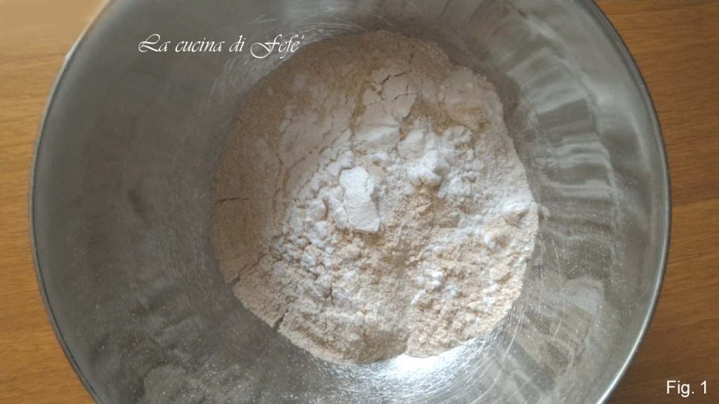 En un tazón grande, tamizar las harinas, es decir, la harina de espelta, el polvo de hornear y el bicarbonato.