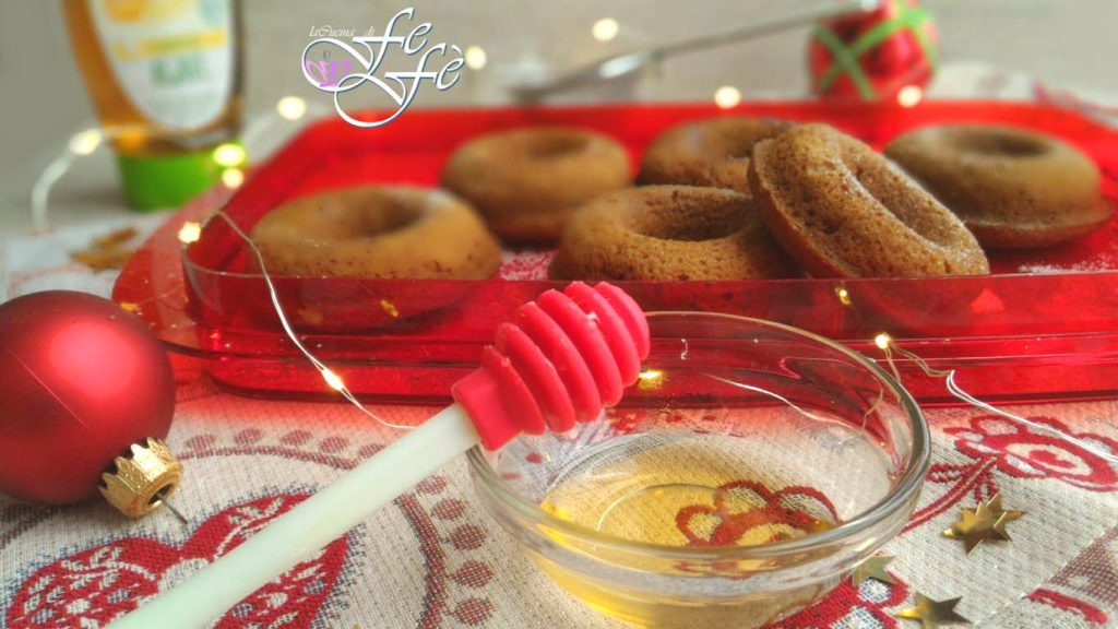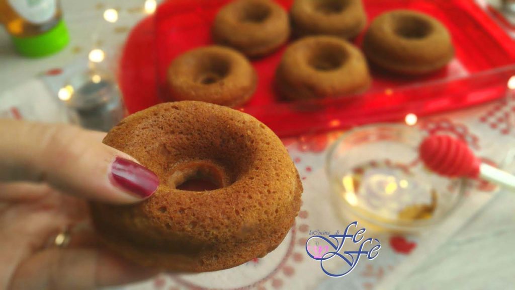 Esta semana, con ganas de aprovechar mis reservas de mantequilla de manzana, pensé en alguna otra receta que pudiera ser adecuada para toda la familia y aprovechada para el desayuno. ¡Estas rosquillas preparadas precisamente con mantequilla de manzana, harina de espelta integral y jarabe de agave son seguramente la respuesta a esta necesidad! Dulces pero no demasiado, rústicas y muy esponjosas, son el compromiso perfecto entre sabor y autenticidad. De hecho, están endulzadas esencialmente con jarabe de agave y al ser libres de grasas, son realmente ligeras y digeribles. Las compartí agradablemente una tarde con una querida prima mientras disfrutábamos de una taza humeante de infusión, pero son fantásticas también mojadas en café con leche. Pueden decorarlas también con miel o un topping delicioso de chocolate, o más simplemente espolvoreadas con azúcar glas. Prepararlas será realmente un momento, de hecho solo necesitarás dos tazones y un batidor manual y justo el tiempo de cocinarlas en el horno. Sacarán un desayuno saludable para sus hijos, rico en fibra gracias a las manzanas y con un bajo índice glucémico gracias al jarabe de agave en sustitución del azúcar. ¿No creen que son mucho mejores que las habituales meriendas empaquetadas?