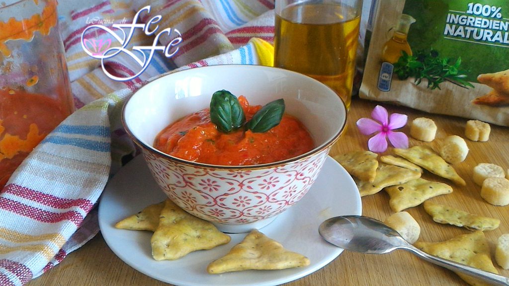 Entre los muchos condimentos y salsas rápidas experimentados en estos años, esta salsa de pimientos frescos de temporada es sin duda la que encierra ese inconfundible sabor de los sabores mediterráneos, súper invitante y muy aromática gracias también a la mezcla de aromas del huerto, simples y genuinos! Excelente como condimento para la pasta, no desdeña ser utilizada de las maneras más variadas en la cocina, incluso untada en productos horneados como bruschettas, grissini o crostini! Esta salsa es sin duda una válida y fresca alternativa a las salsas habituales, perfecta para sorprender a vuestros invitados y versátil también para satisfacer a los paladares más exigentes, adaptándose de manera óptima a las demandas de una cocina vegetariana, vegana, sin gluten y sin lactosa! En resumen, sana y deliciosa.