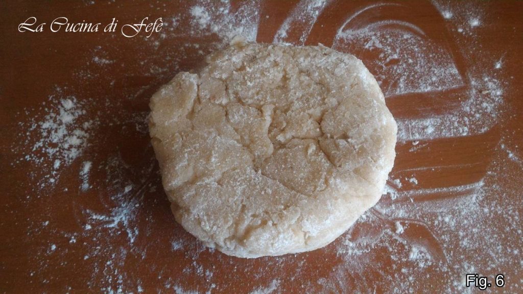 • Una vez tibio, trabaja la mezcla hasta obtener un panecillo firme y homogéneo. Envuélvelo en film transparente y déjalo reposar a temperatura ambiente durante 15′ (fig. 7).