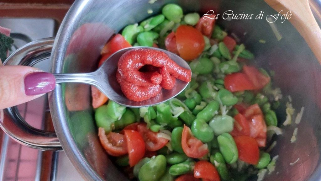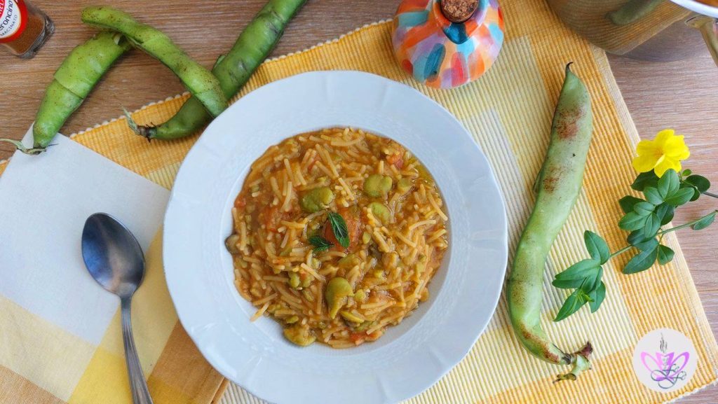 Los espaguetis cortados con habas y tomate fresco es un primer plato sencillo, ligero y nutritivo de la tradición popular siciliana, que aprovecha todas las propiedades beneficiosas de estas legumbres primaverales. Cada año, con la llegada de los primeros calores, compro las habas frescas y las preparo de nuevo con mucho gusto en mi mesa. Si se quiere, también se pueden utilizar habas secas para recrear el plato también en invierno, pero el sabor cambia radicalmente ya que las habas frescas son mucho más dulces. Como muchas preparaciones que evocan mi tierra, este plato también es de herencia materna. Cuando era pequeña, solía ayudar a mi madre, aunque con poco entusiasmo, a desgranar las habas. El esfuerzo de esa operación realmente valía la pena, apreciando la bondad y genuinidad final de esa pasta que ella usaba rigurosamente corta. Con el tiempo aprendí a prepararla yo también bien cremosa como ella y aromatizándola con hojas de menta y pecorino siciliano, o con un fragantísimo hinojo salvaje local. Los pasos para realizar este plato adecuado para toda la familia son en su mayoría fáciles y bastante rápidos, excluyendo naturalmente la limpieza de la legumbre fresca. Así que si, como a mí, te encantan las habas, debes probarlo absolutamente, ¡no te decepcionará!