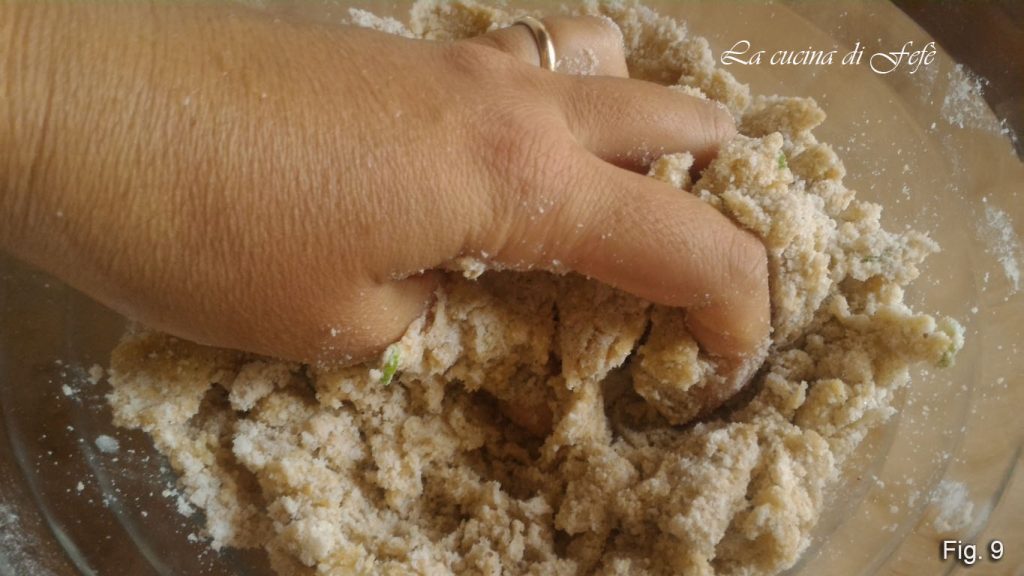 Amasa rápidamente en el tazón, añadiendo, si es necesario, un poco de agua fría (fig. 9).
