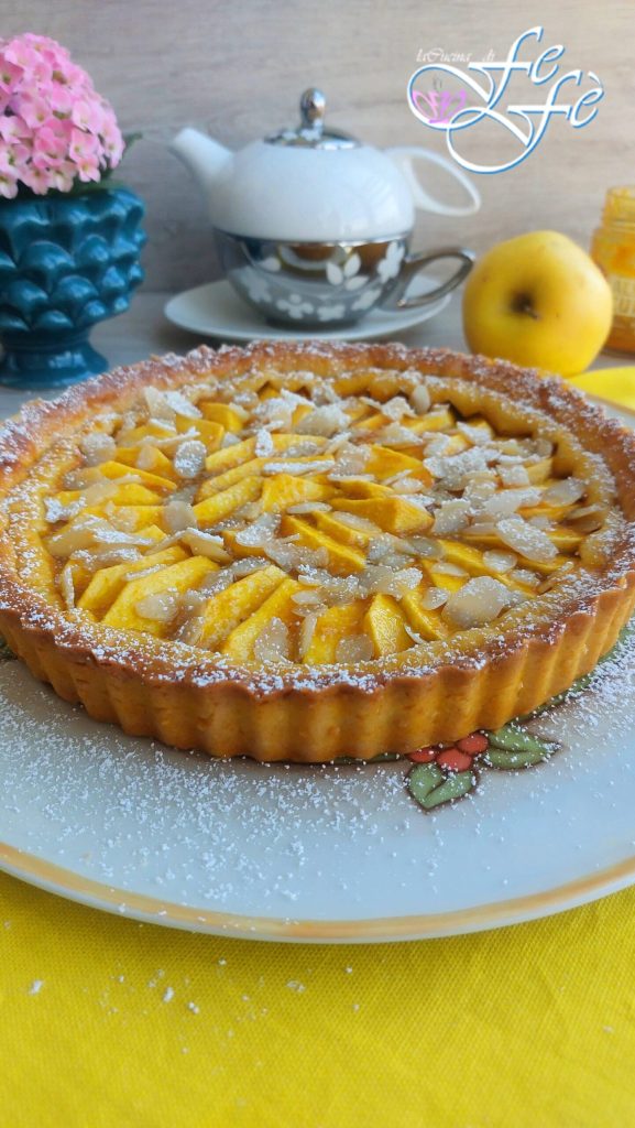 Últimamente me ha dado una verdadera pasión por las galletas y tartas, quizás porque me encanta variar las masas y experimentar siempre nuevas soluciones, pero sobre todo porque, a diferencia de antes, ¡he empezado a apreciarlas más! Sí, les parecerá una locura, pero hasta hace unos diez años, si alguien en la familia preparaba alguna tarta, ¡yo incluso saltaba la posibilidad de disfrutar del dulce si no había alternativas! No me pregunten la razón de esta reluctancia mía, francamente la desconozco, pero lo que importa es que finalmente he cambiado de rumbo, y también en este caso por un inexplicable misterio. El hecho es que hoy en día ¡estoy horneando tartas como si no hubiera un mañana! Por eso hoy quiero proponerles uno de mis experimentos más interesantes, una masa de espelta con un relleno muy cremoso y tentador a base de confitura de albaricoque, y en mi caso también con una ligera nota aromática de cúrcuma. Todo enriquecido con muchas jugosas y azucaradas rodajas de manzanas golden. Un dulce de fácil ejecución además, porque si tienen un robot de cocina, será aún más rápido, solo tendrán que añadir todos los ingredientes de la receta en el vaso y en pocos segundos obtendrán su masa. Naturalmente, alternativamente podrán realizar la masa también a mano en una superficie de trabajo. Y después de un breve reposo en el refrigerador, bastará con estirar un disco entre dos hojas de papel de horno y ¡listo! Para el relleno, dejen volar la imaginación también con mermelada de naranja o cítricos o utilizando una confitura de melocotón. Será el perfecto mimo matutino para enfrentar con más energía sus días o la merienda saludable para sus pequeños y… ¡no solo!