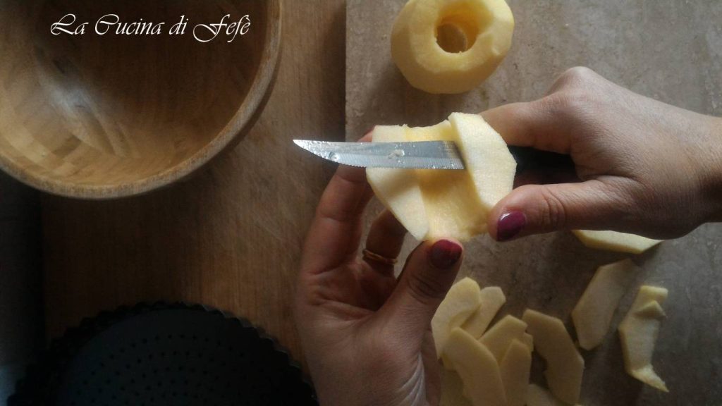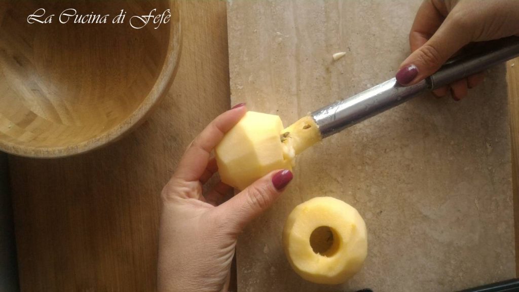 Mientras tanto, encárguense de las manzanas: lávenlas, pélenlas y quítenles el corazón central con un descorazonador.