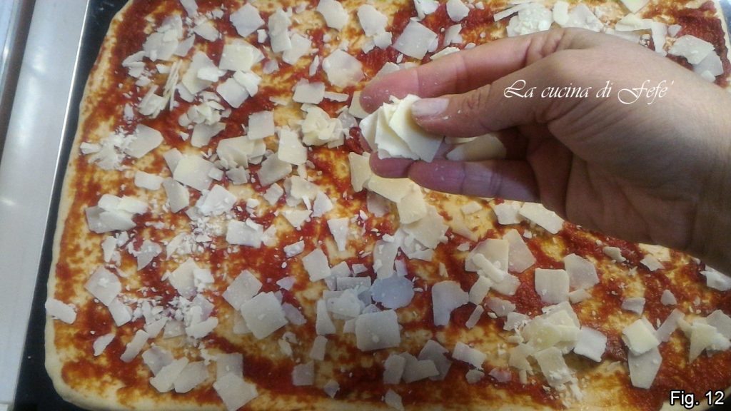 • Agregar también el queso cortado en escamas (fig. 12).