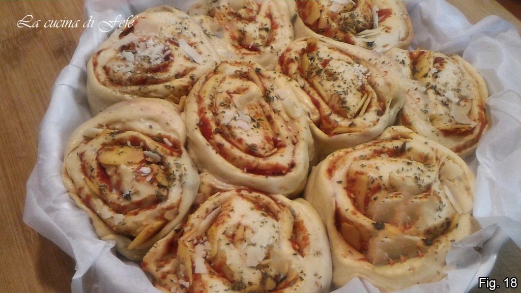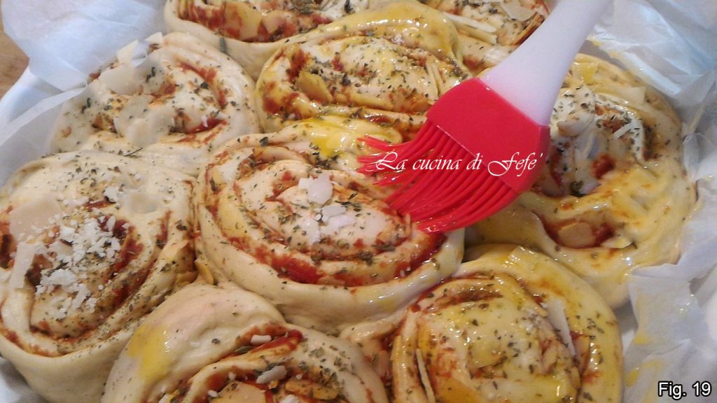 • Transcurrido este tiempo, espolvorear con el parmesano rallado y pintar con una yema batida (fig. 19).