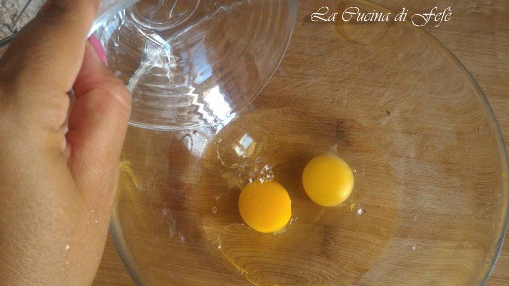 En un segundo bol, une los ingredientes líquidos, es decir, los huevos, a temperatura ambiente, y el aceite.