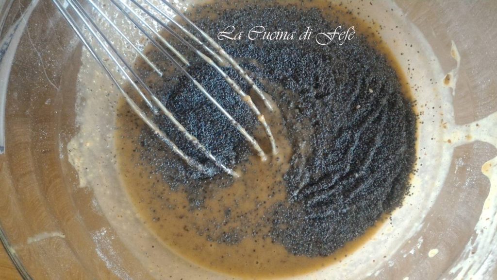 Finalmente añade las semillas de amapola y mezcla con el batidor.