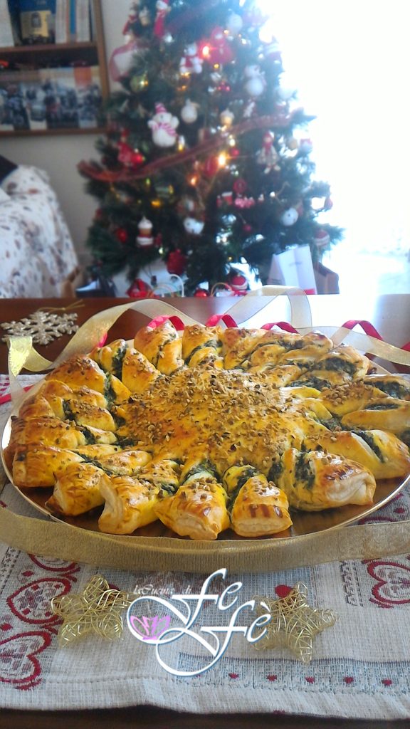 Hemos llegado a la semana de Navidad, ni siquiera sabría decir cómo, ¡el tiempo ha volado literalmente! De cara a estas fiestas, quiero dejaros una receta espectacular, muy escenográfica y deliciosa, la tarta girasol. Se trata de una masa, rellena con un relleno de espinacas, ricota y feta griega, adornada en la superficie con una capa de pistachos muy tentadora, que al cocinarse se tostará, ¡volviéndose muy crujiente! Será perfecta para presentarla en el centro de una mesa, donde cada comensal podrá arrancar un pétalo y disfrutarlo acompañado de un aperitivo refrescante y espumoso. Más allá de las fiestas, podéis preparar esta tarta para cualquier otra ocasión, para llevar por ejemplo a un picnic, a la oficina, a la playa, ¡donde queráis! En resumen, una receta doblemente versátil, porque podréis variar cada vez un relleno diferente o crear muchos juntos para un buffet con rellenos sabrosos y deliciosos. ¡Os lo garantizo, siempre tendréis un gran éxito!