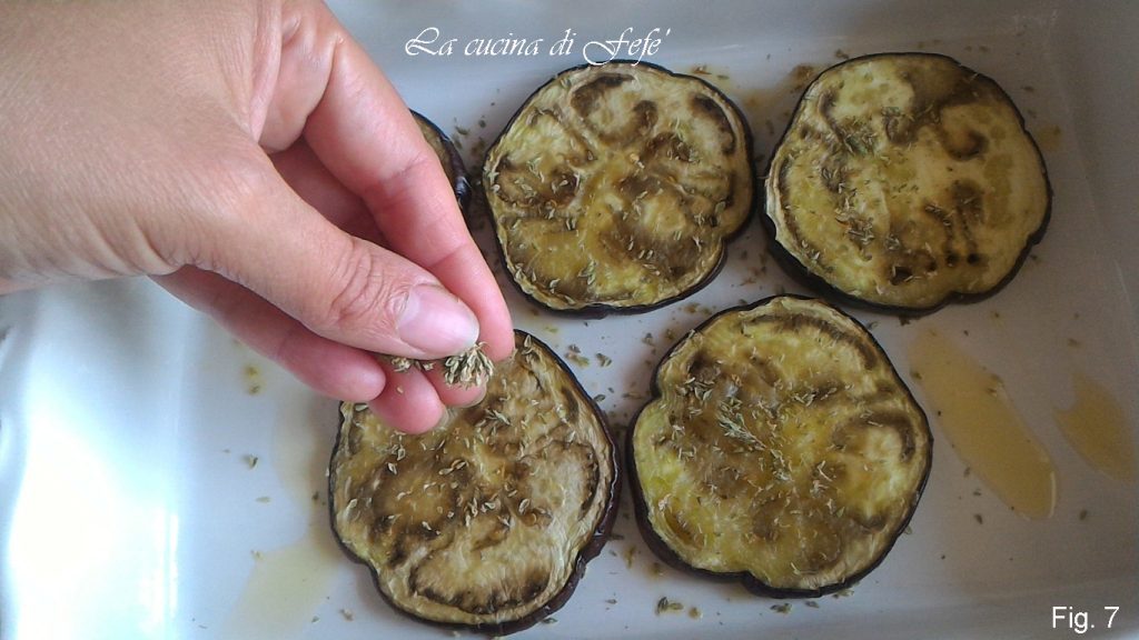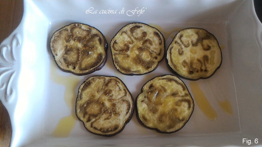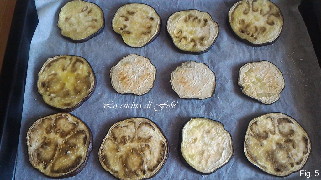 • Una vez cocidas, saca las rodajas de berenjena del horno y déjalas templar (fig. 5).