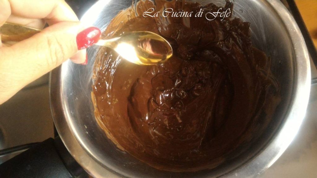 🟣 *La adición del aceite de semillas al chocolate fundido evita que se endurezca y lo mantiene en una consistencia perfecta para la inmersión. Además, si durante la operación de inmersión de las trufas, el chocolate se endurce volviéndose más sólido y no trabajable, no te preocupes, bastará con poner el bol al baño María por unos segundos, la presencia del aceite facilitará su retorno al estado líquido.