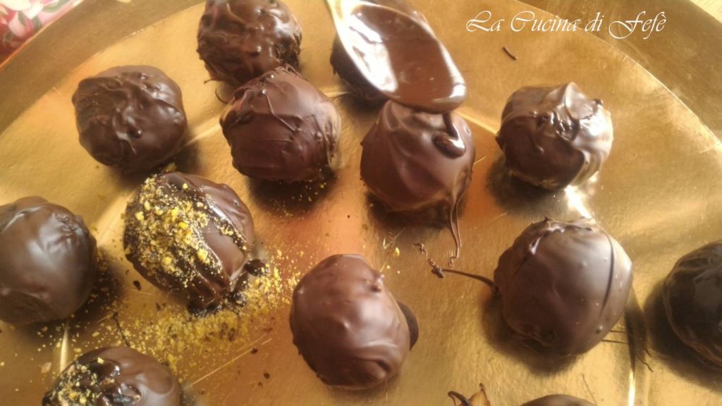 Coloca las trufas nuevamente en la bandeja, vuelve a meter en la nevera 10′ y decora con el chocolate fundido restante.