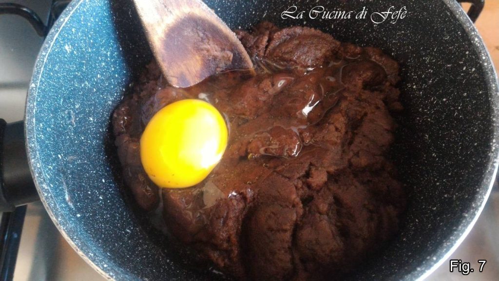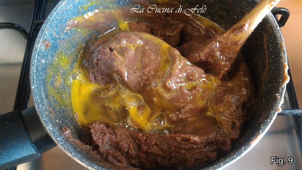 • Apagad el fuego y dejad enfriar un par de minutos continuando a compactar, luego incorporad los huevos, uno por uno.