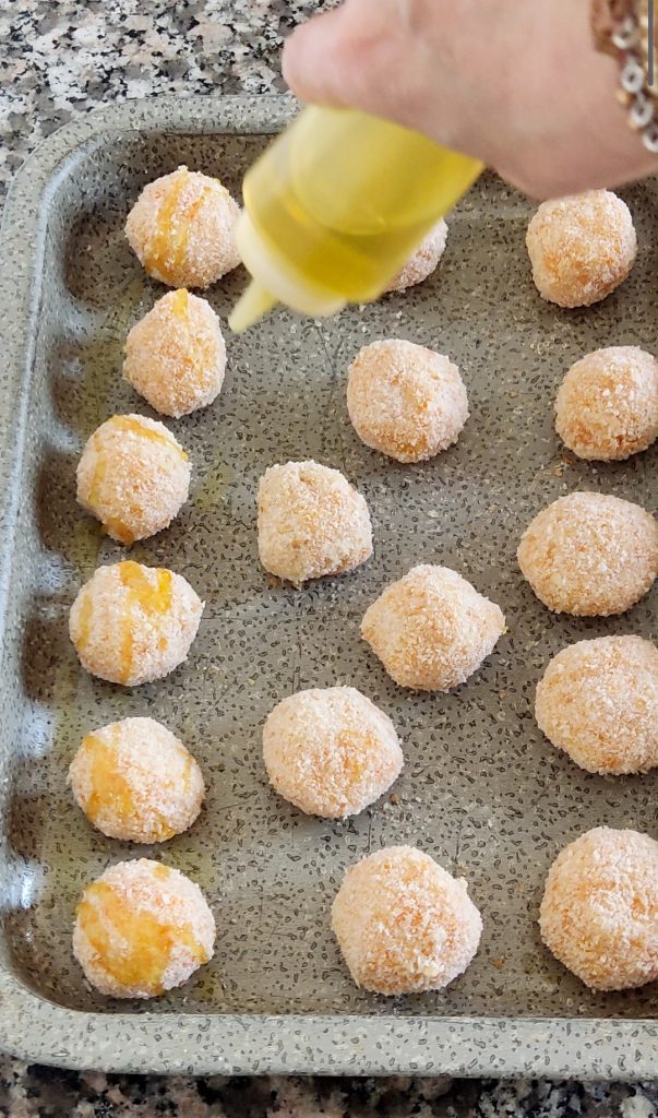 • Prepara todas las Albóndigas de zanahorias de la misma manera hasta terminar la mezcla y colócalas una al lado de la otra en una bandeja aceitada o forrada con papel de horno