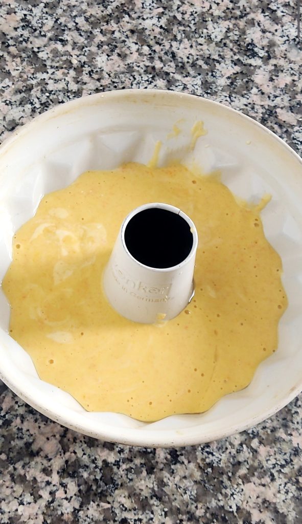 Viertan la masa en un molde de bizcocho de 22 cm de diámetro engrasado o enmantequillado.