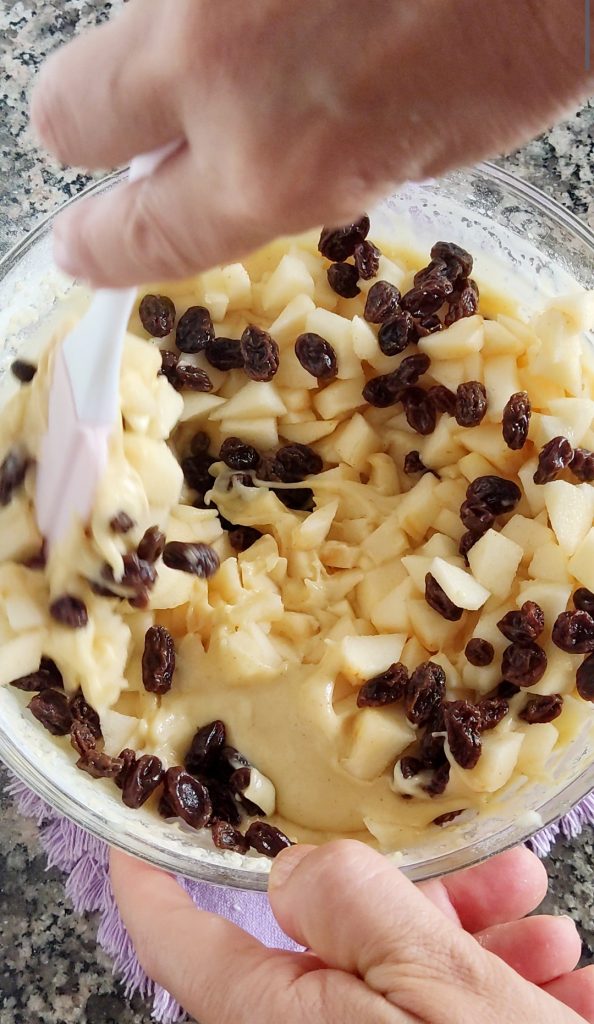 Por último incorpora las manzanas en cubitos y las pasas escurridas.