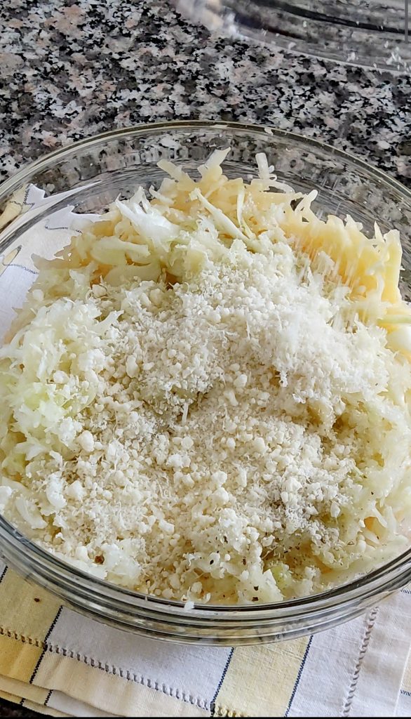 Buñuelos de patatas y col crujientes, sabrosos y deliciosos. La receta que quiero contaros hoy es una receta que tiene como protagonistas la col y las patatas. Dos ingredientes perfectos para crear Buñuelos crujientes, sabrosos y deliciosos, listos en poquísimos minutos. Yo los he cocinado en el horno, pero podéis cocinarlos en la freidora de aire o en la sartén con un poco de aceite de oliva virgen extra. Simplemente he rallado tanto las patatas como la col y las he mezclado con el parmesano rallado. Prácticamente solo 3 ingredientes para preparar un acompañamiento sabroso que convencerá a todos a comer esta verdura. Os dejo imaginar lo crujientes y lo buenos que son. Os recomiendo que no perdáis tampoco la receta de mis Pepitas de patatas crujientes por fuera y tiernas por dentro. ¿Os he convencido ya para probarlas? Vayamos entonces a la cocina y preparemos juntos los Buñuelos de col y patatas
