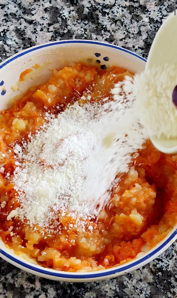 Croquetas con calabaza y patatas sencillas y deliciosas. ¡Qué buena está la calabaza! Ya no cuento las Recetas con calabaza que llenan mi Blog, tanto saladas como dulces. La receta que quiero contaros hoy es la de crujientes Albóndigas de calabaza y patatas que he cocido en el horno, pero si preferís podéis cocinarlas en freidora de aire, en sartén con un poco de aceite o incluso freírlas. He puesto en el centro de mis Croquetas de calabaza un cubito de scamorza para una irresistible delicia que conquista al primer bocado. Además de la calabaza que he cocido en sartén, he añadido patatas cocidas para una super suavidad. Con la calabaza, os aconsejo que no os perdáis también la receta del Rollo de hojaldre con calabaza y speck y la receta de mis Risottos con calabaza. Si también vosotros amáis la calabaza, esta es realmente una receta que no debéis perder. Corramos entonces a la cocina y preparemos juntos unas deliciosas Croquetas de patatas y calabaza