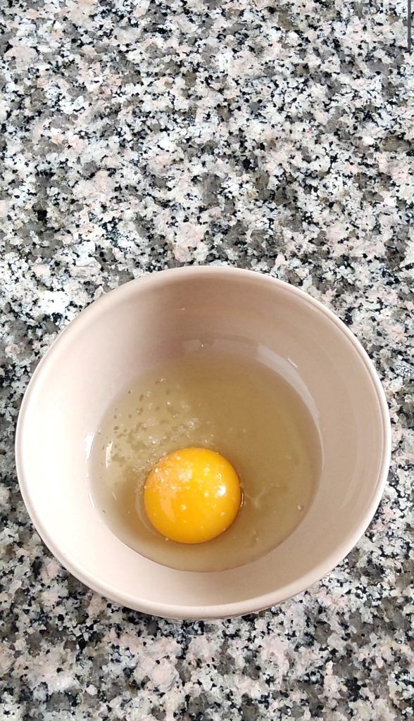 Bate en un bol el huevo con una pizca de sal. Coloca en un plato el pan rallado. Pasa las berenjenas enharinadas primero por el huevo y luego por el pan rallado.