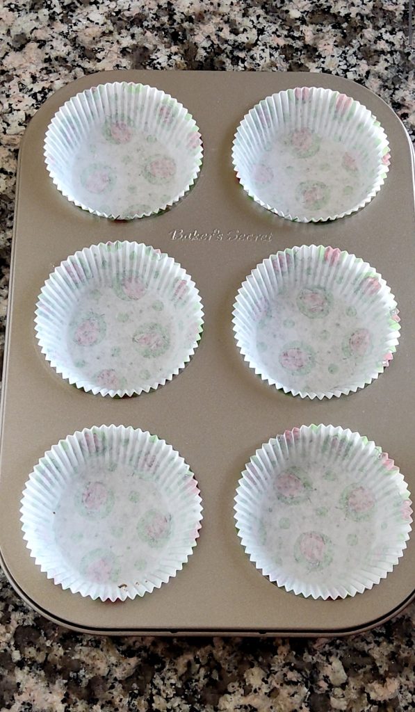 Coloca los moldes de papel en la bandeja para muffins con los agujeros. Llena cada molde hasta 2/3 con la masa.