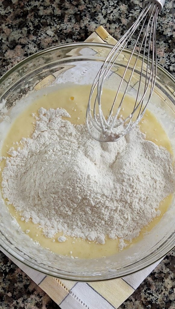 Añade el yogur blanco y mezcla. Continúa añadiendo la harina tamizada y la levadura en polvo. Por último, añade los arándanos y simplemente mezcla con la espátula para incorporarlos a la masa.