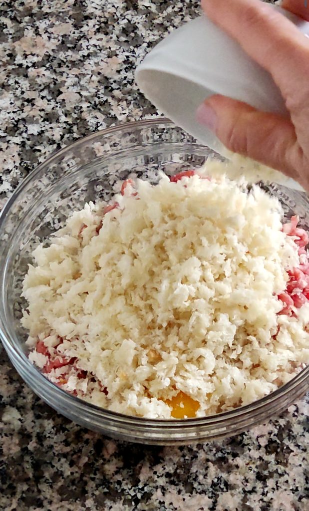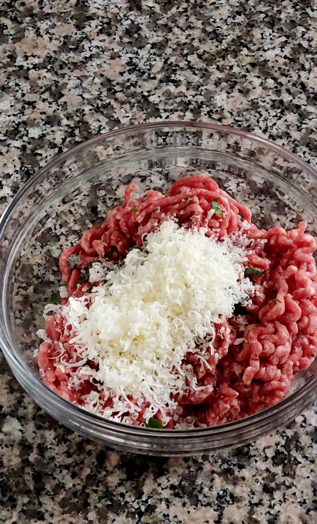 • Agrega el perejil picado, el queso parmesano rallado y un huevo.