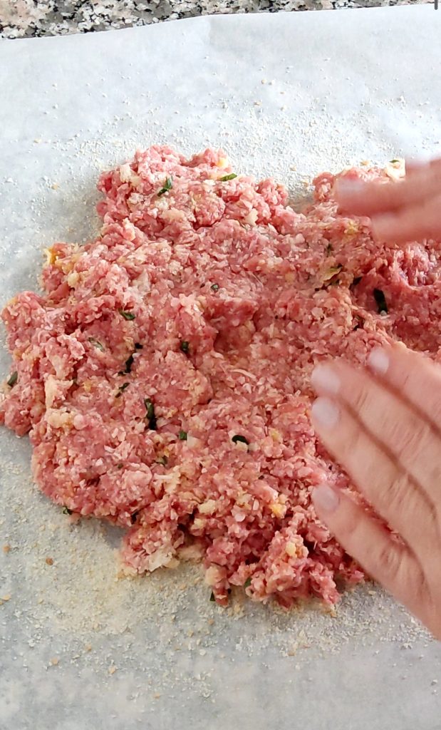 • Con las manos ligeramente humedecidas, aplana la carne dándole forma de rectángulo.