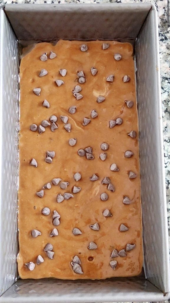 Termina la preparación añadiendo la mayoría de las gotas de chocolate, reserva algunas para decorar el dulce en la superficie. Mezcla con una espátula para incorporarlas a la masa.