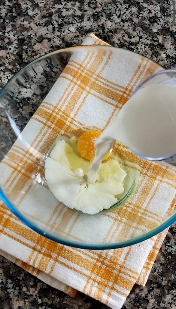Viertan en un bol el huevo. Añadan una pizca de sal, la leche y el aceite de oliva virgen extra. Mezclen simplemente con un tenedor