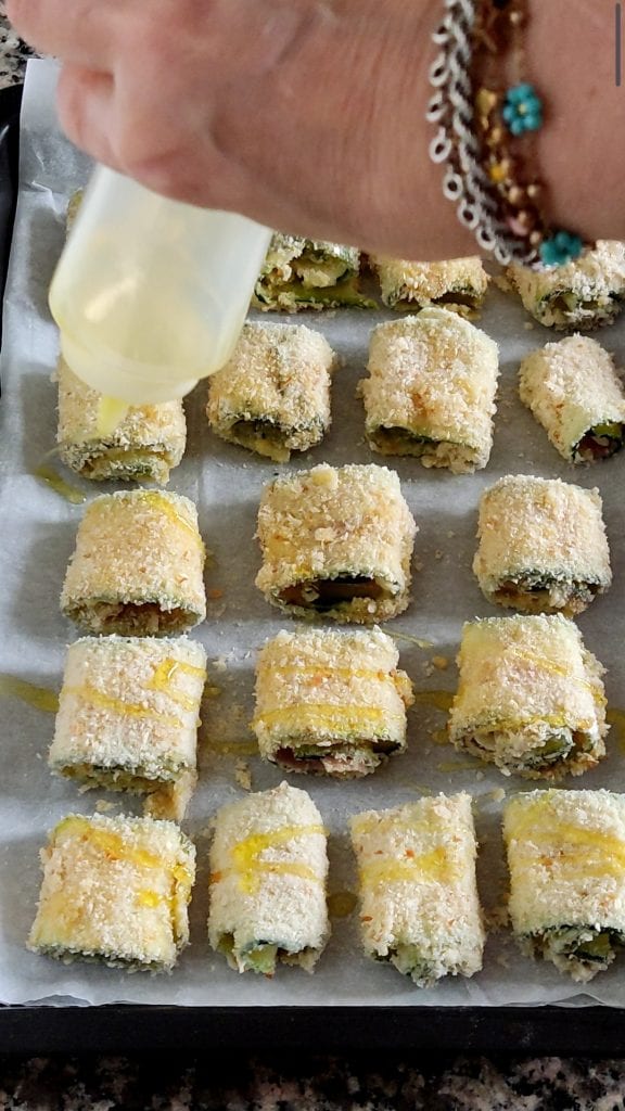 Rollitos con calabacines deliciosos y sabrosos. Aprovecho todavía el calor de estos días de finales de agosto para preparar una Receta con los calabacines. Es aún temprano para dar paso a verduras más otoñales, así que mejor aprovechar todavía las buenísimas verduras de verano como calabacines, pimientos y berenjenas. La receta que quiero contaros hoy es la de unos sencillos y buenísimos Rollitos de calabacines rellenos para cocinar en el horno o en freidora de aire. Para el relleno he utilizado jamón cocido y queso ahumado en rodajas finas y un rebozado delicioso. Pero podéis variar el relleno según vuestros gustos y también utilizando lo que tengáis en casa. No os perdáis tampoco la receta de la Tarta salada con los calabacines y la receta de las Albóndigas de calabacines rapidísimas. Estos Rollitos de calabacines son perfectos como un segundo plato, pero también como un delicioso entrante. Corramos entonces a la cocina y preparemos juntos los Rollitos de calabacines al horno más buenos que habéis probado