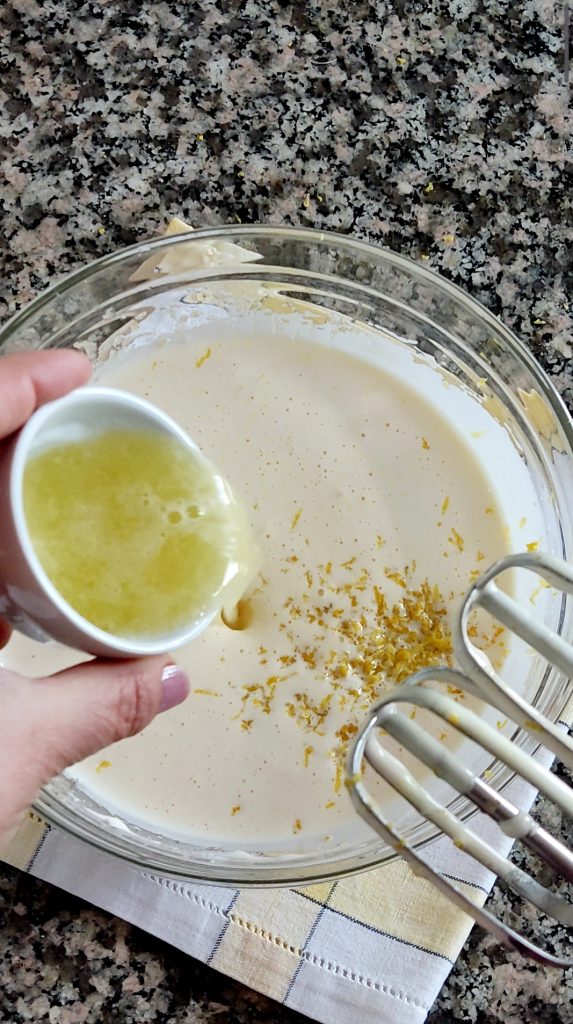 Agrega la cáscara rallada del limón, el jugo del limón y el yogur blanco. Mezcla bien.