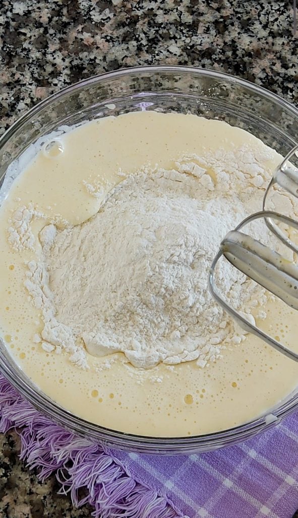 Continúe la preparación agregando la harina tamizada, la levadura para dulces y la canela. Mezcle.