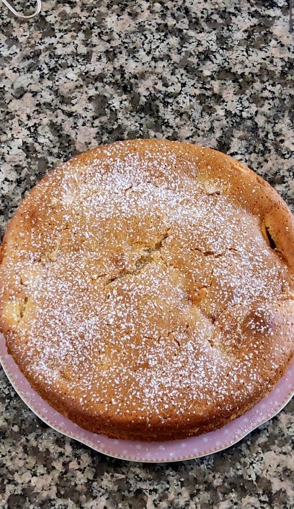 Hasta mañana con una nueva receta, un abrazo, LoredanaIngredientes: 3 huevos. 165 g de azúcar, 75 ml de aceite de semillas, 180 ml de leche, 250 g de harina, 3 manzanas, 1,5 cucharaditas de canela en polvo, un sobre de levadura para dulces