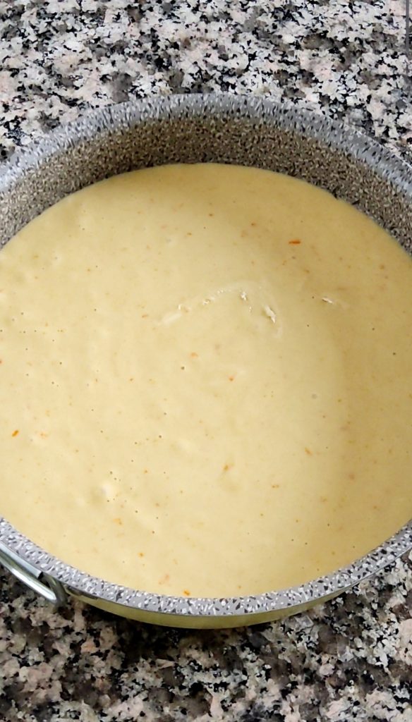 Añade el aceite de semillas, la cáscara rallada y el jugo de naranja. Mezcla.
