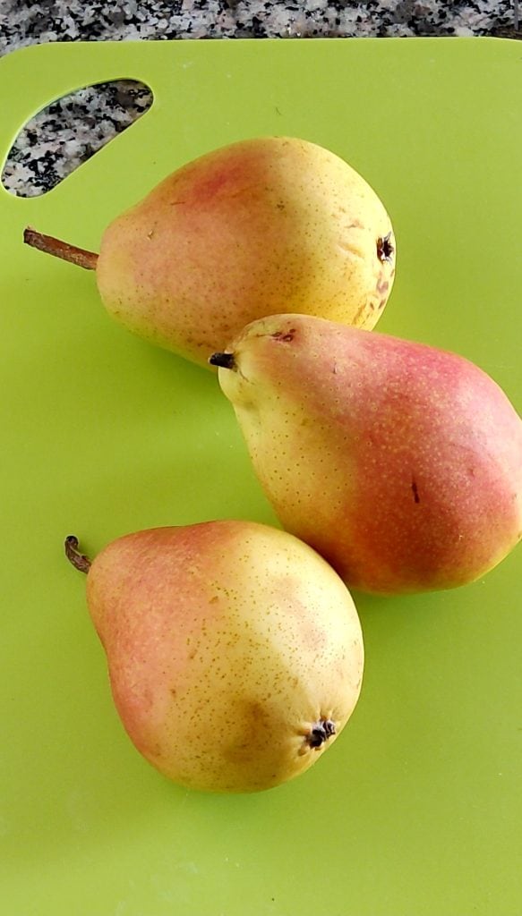 Incorporad a la masa las peras en cubos y mezclad simplemente con una espátula para amalgamarlas a la masa.