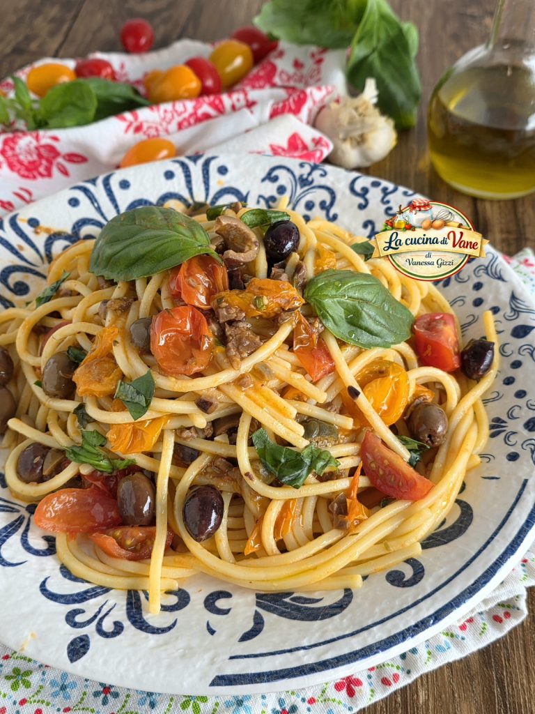 Enriquecidos con aceitunas, alcaparras y albahaca fresca, estos espaguetis se vuelven cremosos e irresistibles, ideales para un almuerzo en familia o una cena de verano ligera pero sabrosa. Una receta fácil de preparar, lista en pocos minutos, que huele a casa y tradición italiana.