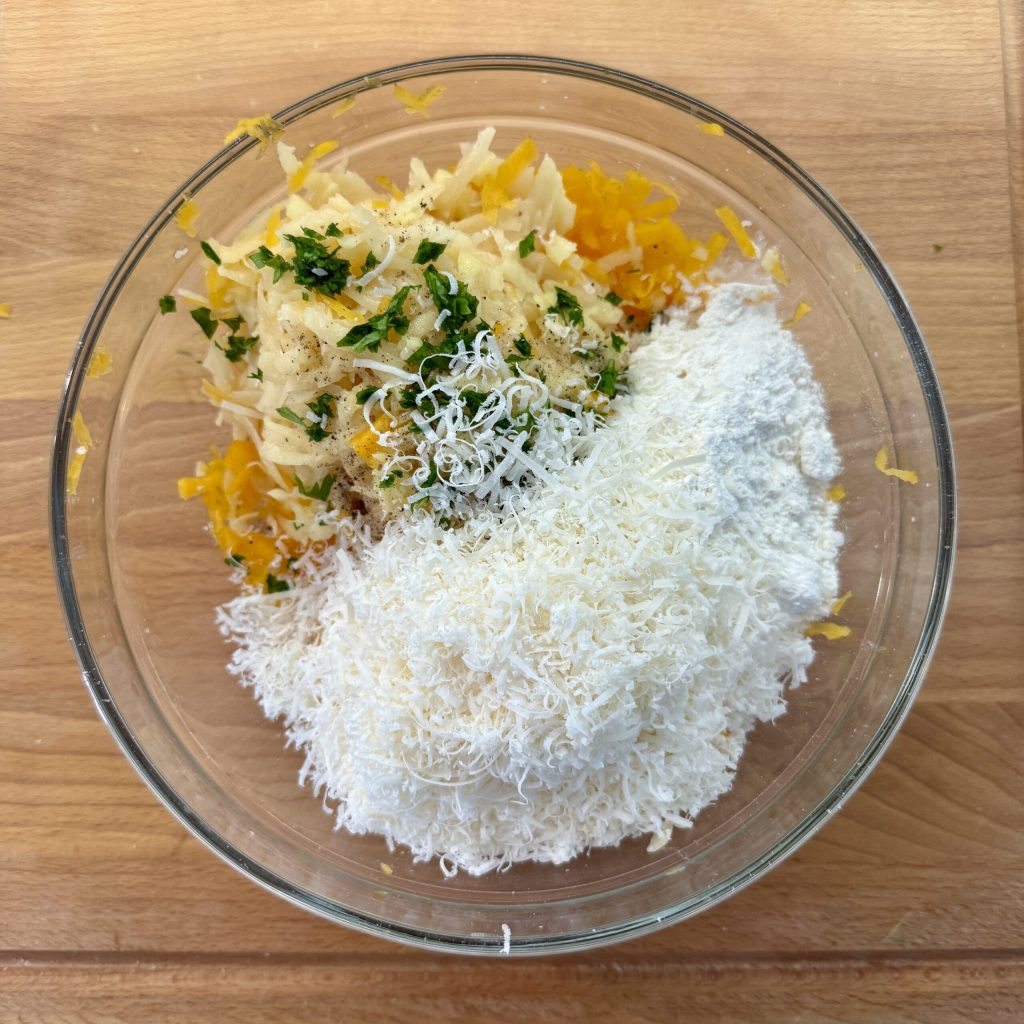 Yo no lo hago, pero si quieres puedes hacerlo, especialmente si usas patatas y una variedad de calabaza acuosa. Después de rallarlas, recógelas en un paño limpio y exprímelas ligeramente para eliminar el exceso de agua.